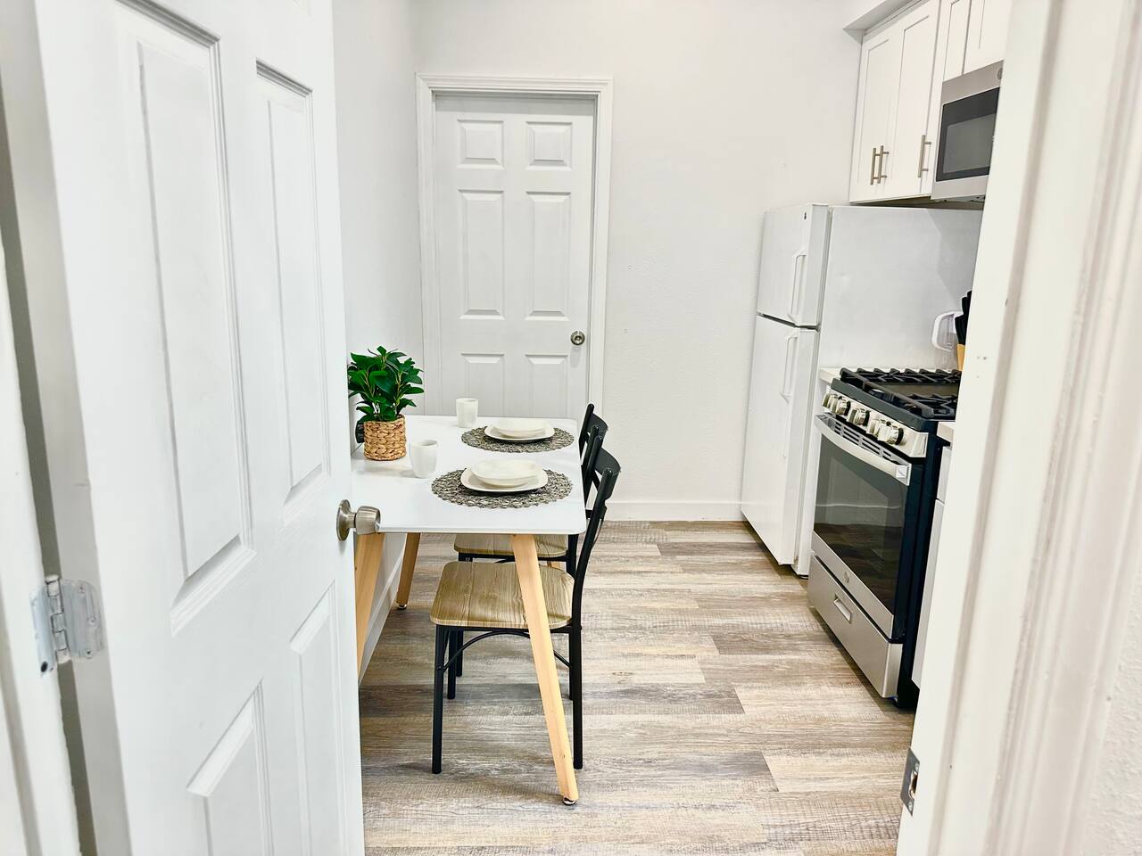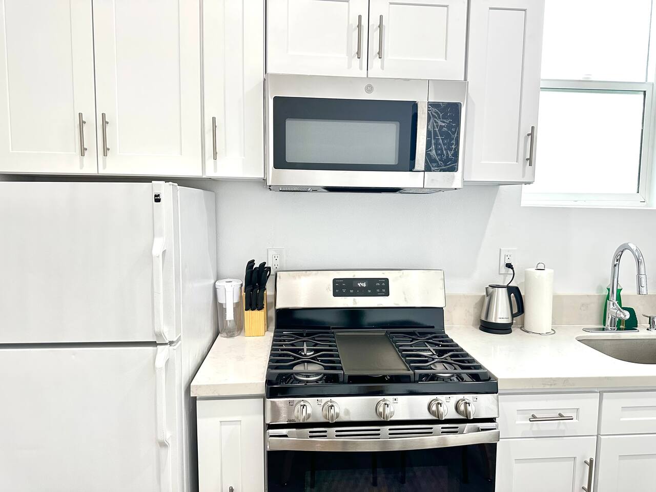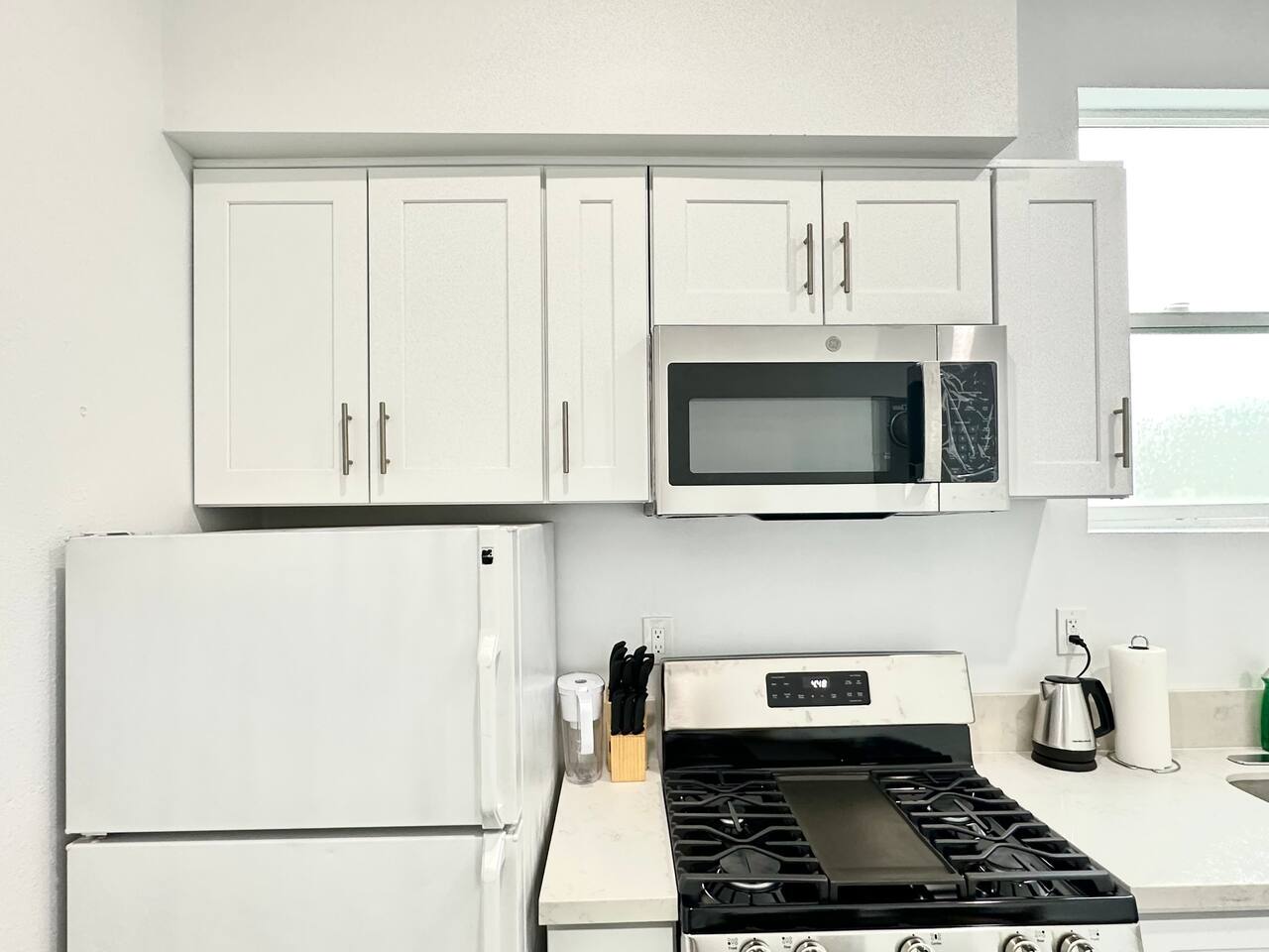 650 sq. ft. | Apartment | Second-floor unit BEDROOM : • ROOM 1 : Queen bed | smart TV | Closet | Iron and ironing board | Split AC | Board Games BATHROOM : Rain shower head | Handheld shower | Shampoo | Conditioner | Body wash | Hairdryer | Toilet paper | Towels KITCHEN / DINING AREA : Stove | Oven | Refrigerator | Microwave | Toaster | Water Kettle | Coffee maker | Brita Water Filter | Cooking utensils | Silverware | Oven mitts | Plates and bowls | Mugs, cups, wine glasses | Dining table AC/HEAT : Split AC is used in this unit LAUNDRY ROOM : - In building (7AM - 10 PM) - Shared - Coin Operated PARKING : Parking at back of the property. Street parking also available ELECTRIC CAR : Tesla Supercharger available across the street LOCATION : Ontario Central Downtown | Commercial area on ground floor Driving distances : Ontario International Airport - 3.7 mi, Ontario Convention Center - 3 mi, Ontario Mills Shopping Mall - 6.6 mi, Cucamonga-Guasti Regional Park - 4.7 mi, Downtown Los Angeles - 41.6 mi, Los Angeles International Airport - 54.7 mi, Disneyland - 30.2 mi, Universal Studios - 49.3 mi.