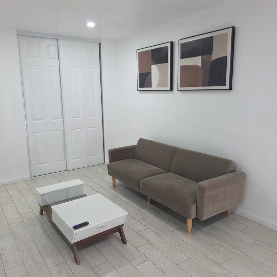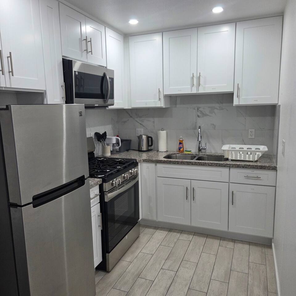 600 sq. ft. | 19 units - 1 story Apartment complex BEDROOM : • ROOM 1 : Queen bed | Closet | AC BATHROOM : Handheld shower | Bathtub | Shampoo | Conditioner | Body wash | Hairdryer | Toilet paper | Towels LIVING ROOM AREA : Widescreen TV | Sofa | Coffee table | 2nd Closet KITCHEN/DINING AREA : Stove | Oven | Refrigerator | Microwave | Toaster | Water Kettle | Coffee maker | Brita Water Filter | Cooking utensils | Silverware | Oven mitts | Plates and bowls | Mugs, cups, wine glasses | Dining table PARKING : Dedicated parking lot - (ONLY 1 spot) | No Street parking Parking is restricted to standard-sized personal vehicles. Oversized or commercial vehicles are not permitted. LAUNDRY - WASHER/DRYER : Our apartment complex has a SHARED coin-operated laundry machines. AC/HEAT : Split AC LOCATION : This unit is located in a super convenient area. Close to 210 and 10 freeways. Close to shopping malls, restaurants, gas stations, and supermarkets: Walmart, Costco, Stater Bros., and Target. Only 3 minutes to Yaamava’ Resort & Casino, 45 minutes to Big Bear Lake, 40 minutes to Lake Arrowhead, and about 1 hour to Joshua Tree National Park.