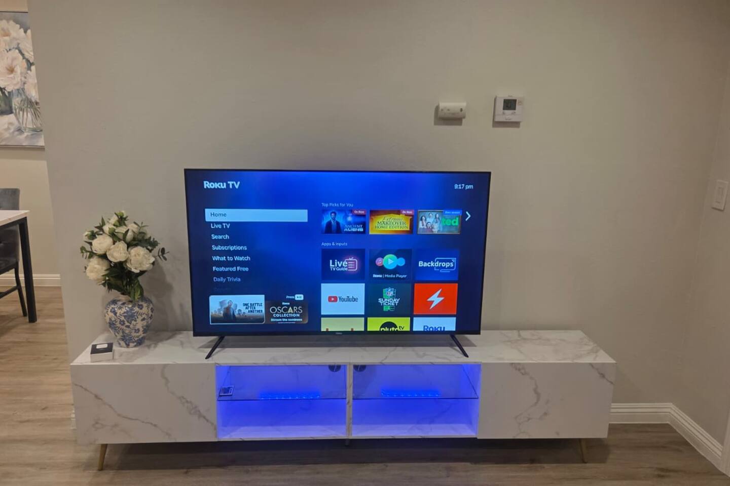 600 sq. ft. | 19 units - 1-story apartment complex | BEDROOM : • ROOM 1 : Queen bed | Closet | Split AC | BATHROOM : Handheld shower | Bathtub | Shampoo | Conditioner | Body wash | Hairdryer | Toilet paper | Towels LIVING ROOM AREA : Widescreen TV | Sofa | Coffee table | 2nd Closet KITCHEN/DINING AREA : Stove | Oven | Refrigerator | Microwave | Toaster | Water Kettle | Coffee maker | Brita Water Filter | Cooking utensils | Silverware | Oven mitts | Plates and bowls | Mugs, cups, wine glasses | Dining table PARKING : Dedicated parking lot - (ONLY 1 spot) | No Street parking Parking is restricted to standard-sized personal vehicles. Oversized or commercial vehicles are not permitted. LAUNDRY - WASHER/DRYER : Our apartment complex has a SHARED coin-operated laundry machines. AC/HEAT : Split AC LOCATION : This unit is located in a super convenient area. Close to 210 and 10 freeways. Close to shopping malls, restaurants, gas stations, and supermarkets: Walmart, Costco, Stater Bros., and Target. Only 3 minutes to Yaamava’ Resort & Casino, 45 minutes to Big Bear Lake, 40 minutes to Lake Arrowhead, and about 1 hour to Joshua Tree National Park.